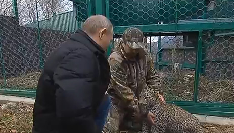 Τα τελευταία χρόνια το Τουρκμενιστάν και το Ιράν δώρισαν στη Ρωσία από ένα ζεύγος του πανέμορφου αλλά απειλούμενου με εξαφάνιση ζώου και από την ένωση των δύο ζευγαριών γεννήθηκαν τέσσερα μικρά, τα οποία ο ηγέτης του Κρεμλίνου θέλησε να δει από κοντά. Από πολύ κοντά μιας κια μπήκε στο κλουβί τους...