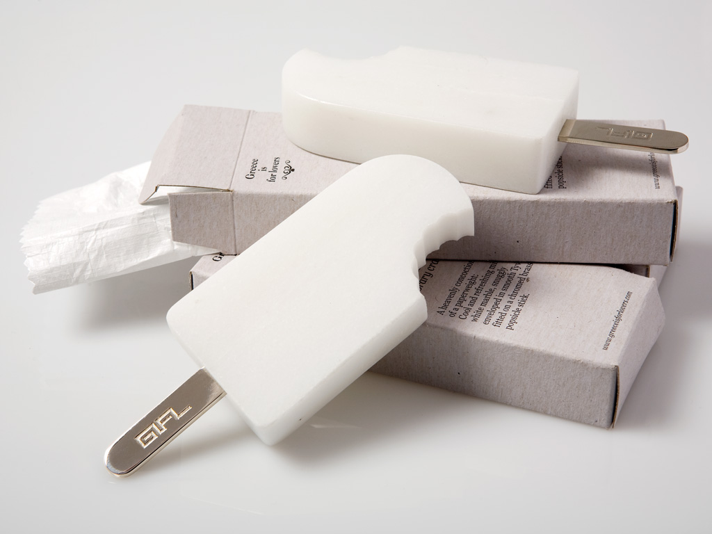 ...αφήνοντας πίσω τους μια παραμορφωμένη εικόνα και προσθέτοντας κιτς στο ήδη υπάρχον κιτς. Να δείξουμε ότι υπάρχει κι άλλη πλευρά της Ελλάδας. Η σύγχρονη. Η δημιουργική. Η αισιόδοξη. Σχεδιάζουμε αναμνηστικά είδη (ακόμα και η λέξη σουβενίρ είναι τόσο αρνητικά φορτισμένη που δεν τη χρησιμοποιούμε)». Γιατί; «Θεωρούμε ότι ένα ταξίδι,