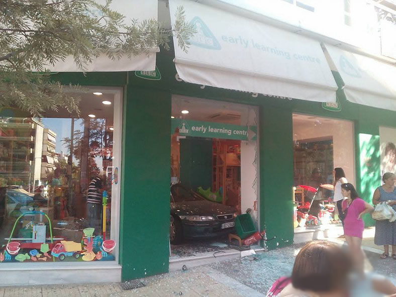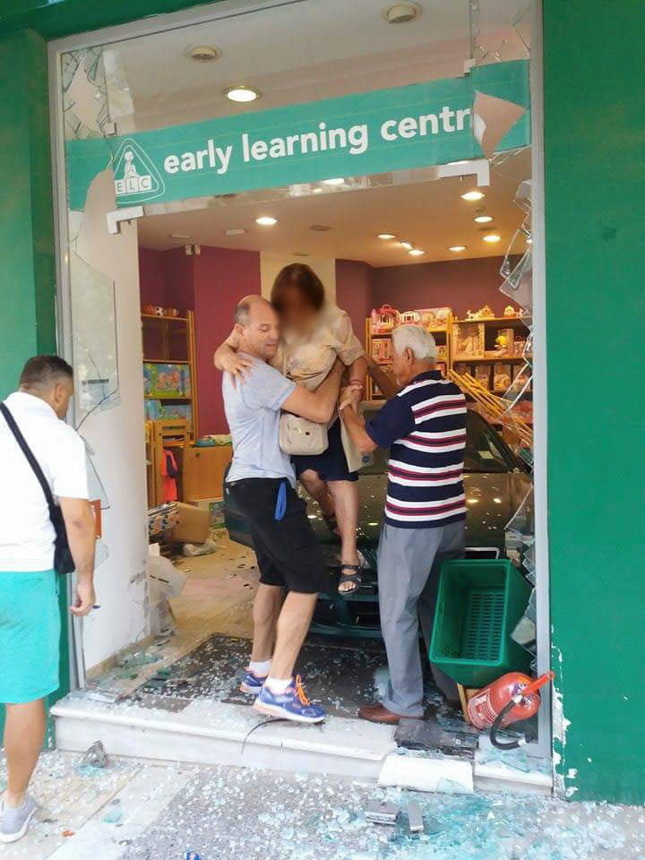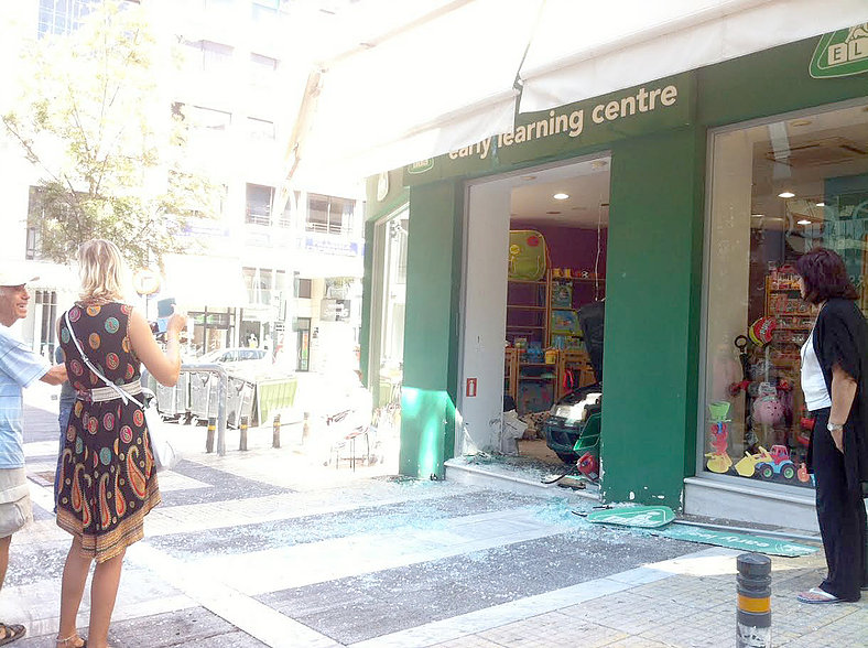 Η ηλικιωμένη κυρία είχε παρκάρει παράνομα στην κεντρική πλατεία της Ν. Σμύρνης και όταν προσπάθησε να ξεπαρκάρει έβαλε όπισθεν και κατέληξε να...παρκάρει μέσα σε γωνιακό κατάστημα.