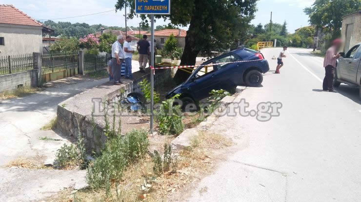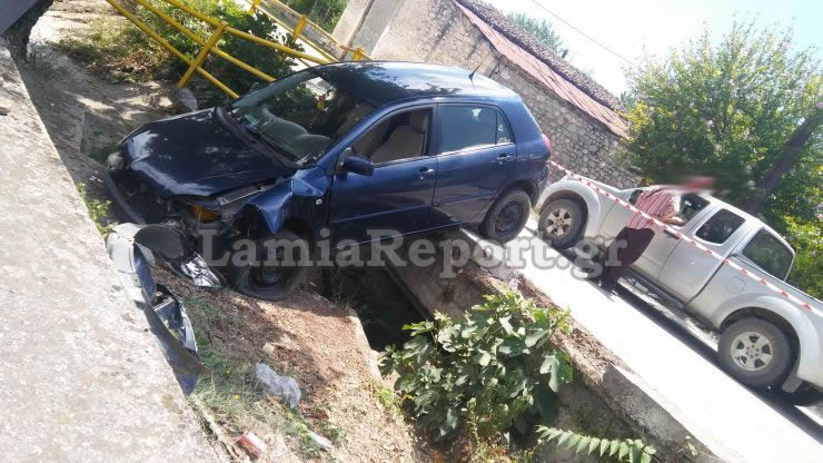 Το ατύχημα που βλέπετε έγινε γύρω στη 1:00' χθες το μεσημέρι στις Κομποτάδες Λαμίας. Ο οδηγός του αυτοκινήτου, Αλβανικής υπηκοότητας, έτρεχε μέσα στο χωριό με αποτέλεσμα να χάσει τον έλεγχο, να σπάσει τα κιγκλιδώματα και να βρεθεί όπως το βλέπετε στη γέφυρα. Από τύχη δεν παρέσυρε κάποιον πεζό αφού εκείνη την ώρα κυκλοφορούσε αρκετός κόσμος. Τυχερός στάθηκε επίσης τόσο ο οδηγός, όσο και η συνοδηγός του.