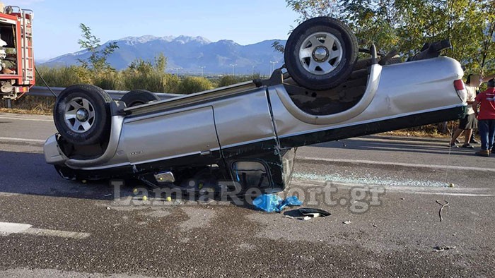 Κάτω από άγνωστες μέχρι στιγμής συνθήκες, το αγροτικό που είχε κατεύθυνση προς Λαμία, τουμπάρισε μέσα στο δρόμο με αποτέλεσμα να προσγειωθεί με τον ουρανό,